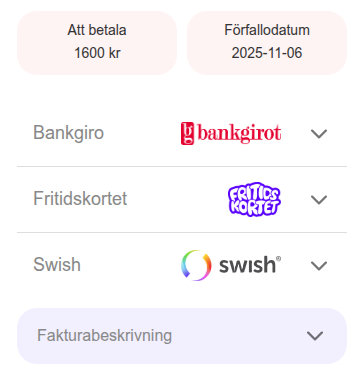 3. Välj Fritidskortet som betalsätt och betala in 550 kr (från 2026 års saldo).